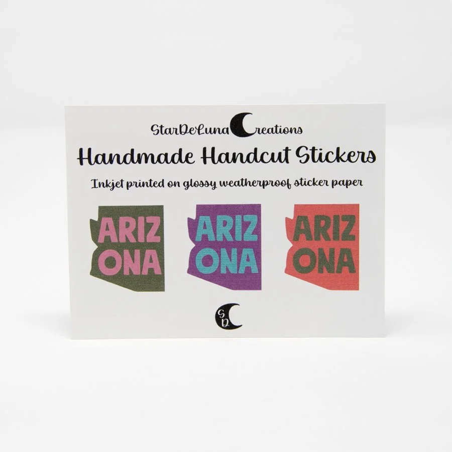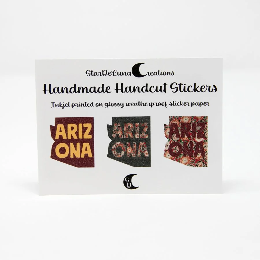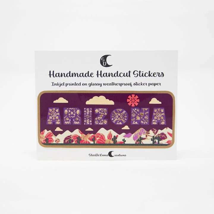 Categories: All Desert Flair Earrings Keychains Magnets Stickers Home All | Desert Flair | Hand Cut Arizona Desert View Sticker $6.00 Hand Cut Geometric Hexagon Desert Night Scene Sticker . Saguaro Cactus $4.00 Hand Cut Geometric Hexagon Desert Night Scene Sticker . Round Cactus $4.00 Hand Cut Geometric Pentagon Desert Night Scene Sticker . Saguaro Cactus $4.00 Hand Cut Geometric Pentagon Desert Night Scene Sticker . Round Cactus $4.00 Hand Cut Geometric Circle Desert Night Scene Sticker . Saguaro Cactus $4.00 Hand Cut Geometric Circle Desert Night Scene Sticker . Round Cactus $4.00 Hand Cut Phoenix Desert View Sticker $6.00 Hand Cut Southwest PHX Sticker $4.00 Hand Cut Floral PHX Sticker $4.00 Hand Cut Southwest AZ Sticker $4.00 Hand Cut Floral AZ Sticker $4.00 Hand Cut ARIZONA State 3 Pack Stickers $6.00 Arizona State Magnet . Metal Cactus Bead $4.50 Arizona State Magnet $4.00 Desert Scene Rectangle Magnet . Round Saguaro Cactus $6.00 Desert Scene Rectangle Magnet . Saguaro Cactus $6.00 Desert Scene Oval Magnet . Saguaro Cactus $6.00 Desert Scene Oval Magnet . Round Saguaro Cactus $6.00 3D Cactus Magnet $5.00 Arizona State Round Suguaro Cactus $6.00 Daisy Floral Arizona State Magnet $7.00 Geometric Pentagon Desert Night Scene Magnet $10.00 Geometric Hexagon Desert Night Scene Magnet $10.00 Geometric Circle Desert Night Scene Magnet $10.00 Round Suguaro Cactus Keychain $10.00 Arizona State Keychain . Metal Cactus Bead $15.00 Arizona State Keychain $14.00 Daisy Floral Arizona State Keychain $16.00 Floral Arizona State Keychain $16.00 Daisy Floral Suguaro Cactus Keychain $16.00 Glitter Saguaro Cactus Dangle Earrings $14.00 Mini Arizona State Stud Earrings 2 Pack $10.00 Southwest Saguaro Keychain $16.00 Floral Saguaro Cactus Keychain $16.00 Glitter Saguaro Cactus Keychain $12.00